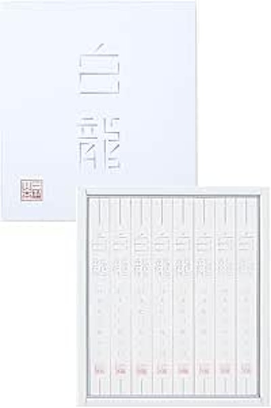 繊細な技が息づく極細手延べそうめん「白龍」は、まさに気品を形にしたような逸品です。職人が極限まで細く引き伸ばした麺は、直径わずか約0.6mm。絹のようになめらかな口あたりでありながら、噛めば驚くほどの弾力が弾けます。さらに、専用の蔵で1年間じっくりと熟成させることで、雑味を削ぎ落とし、小麦本来の深い旨味を極限まで凝縮。特別な日の食卓を彩る、贅沢な喉ごしをご堪能ください。