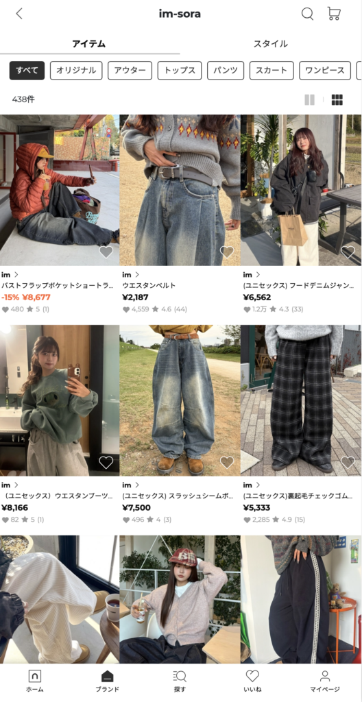 - デザインの傾向:カジュアルでユニセックス寄りのアイテム多め